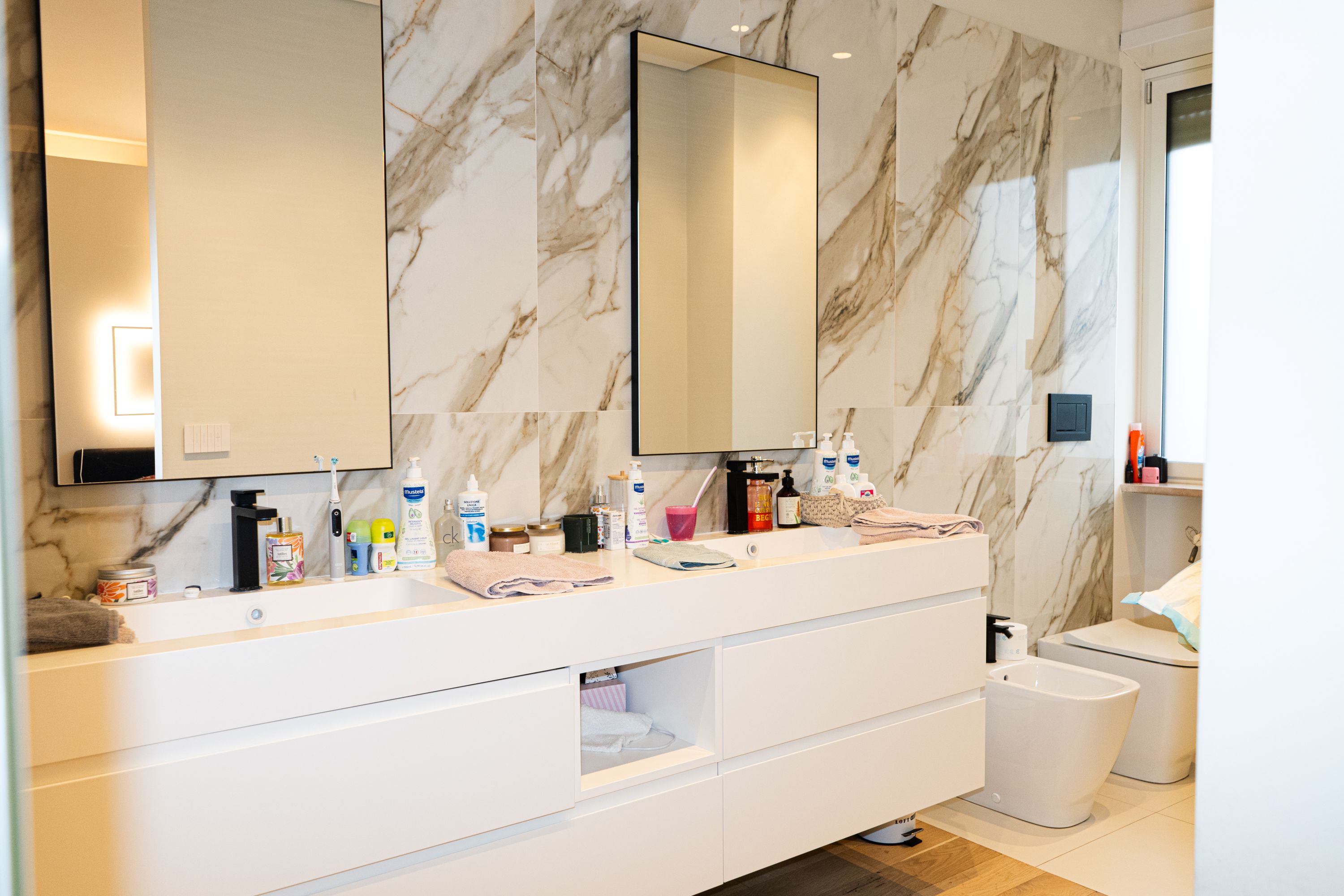 L’ appartamento è dotato di: aria condizionata, portoncino blindato, impianto di allarme e videosorveglianza, vetri doppi, parquet e ceramiche di pregio