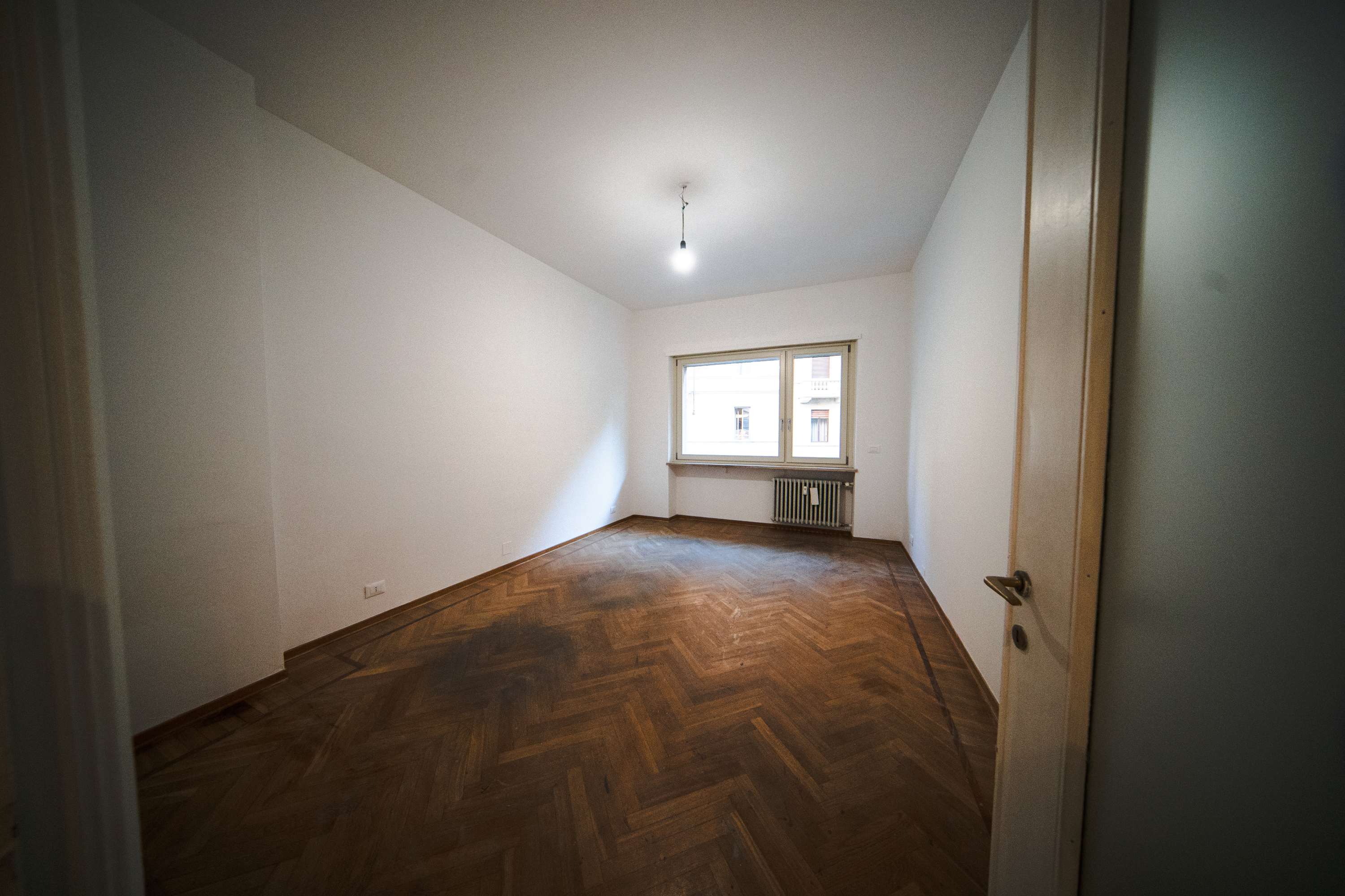 L’ appartamento e’ cosi’ composto: ampio ingresso, cucina abitabile con balcone di servizio lato cortile, due ampie e luminose camere da letto con parquet, comodo bagno finestrato con doccia, ripostiglio e al piano interrato una cantina.