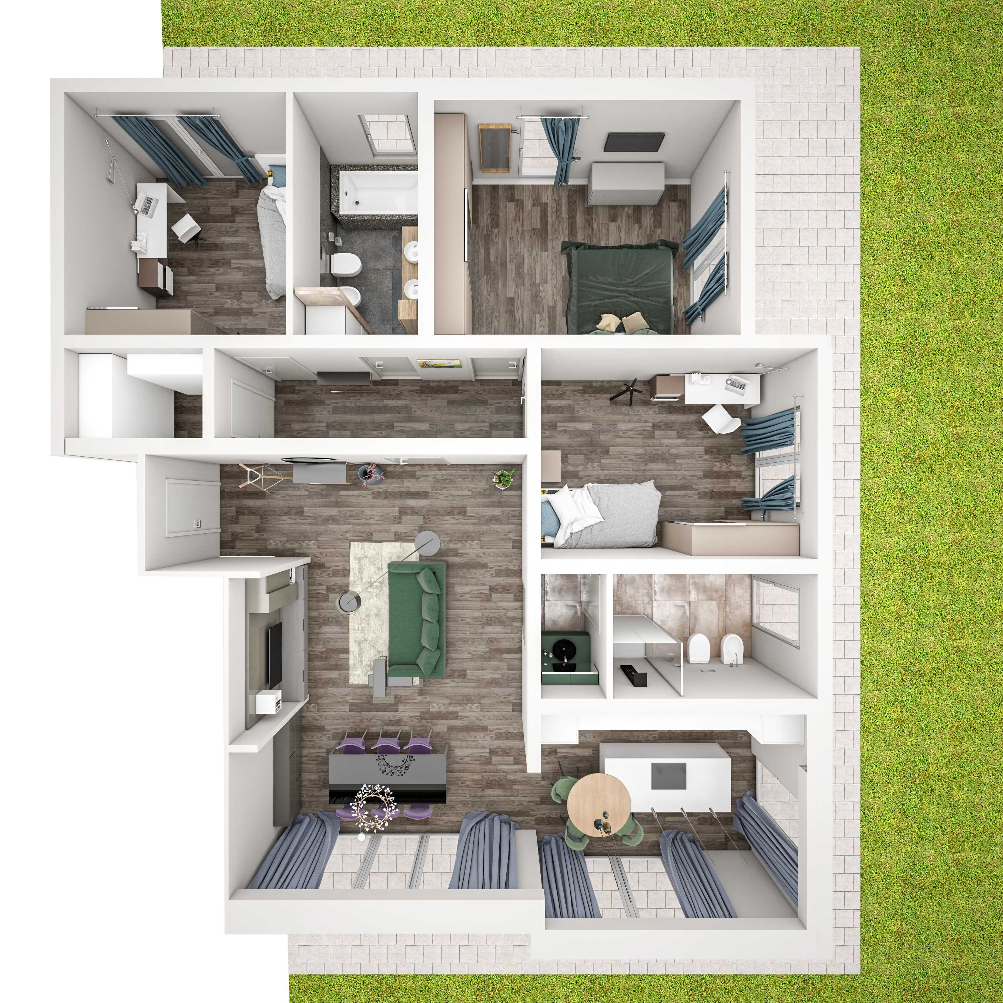 Possibilità di altre soluzioni abitative con diverse metrature: al piano terra con giardino, al piano primo o al piano secondo.