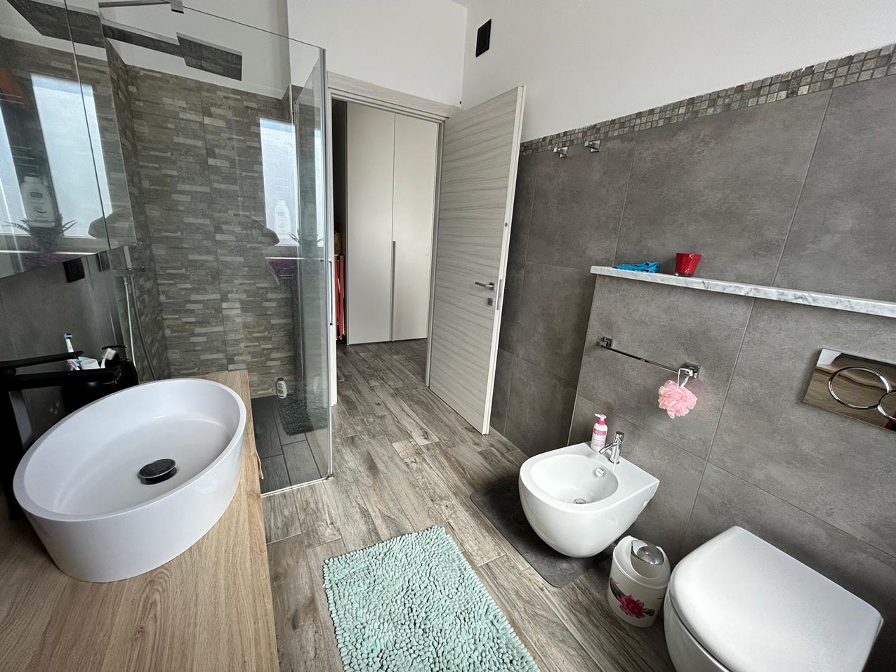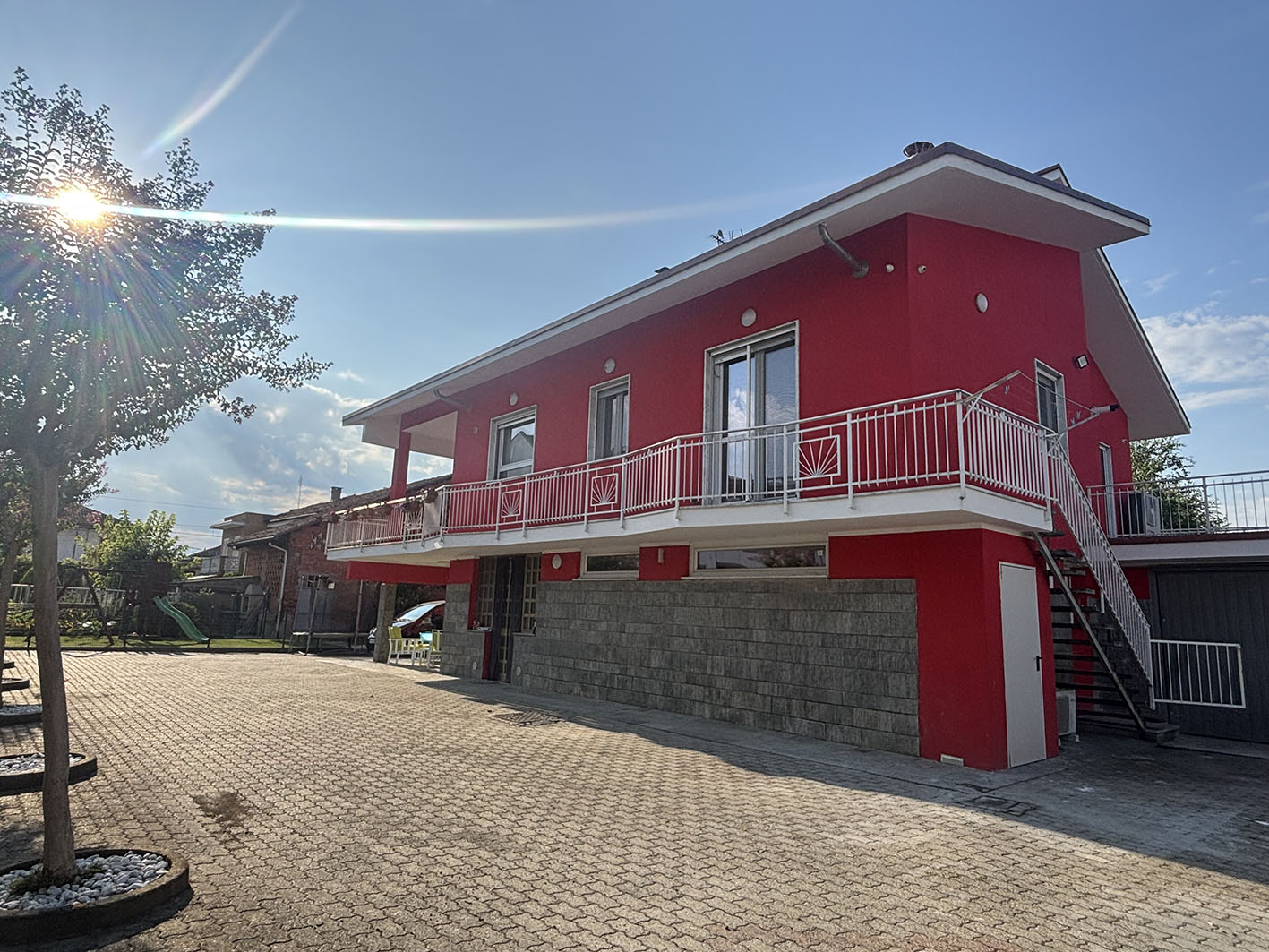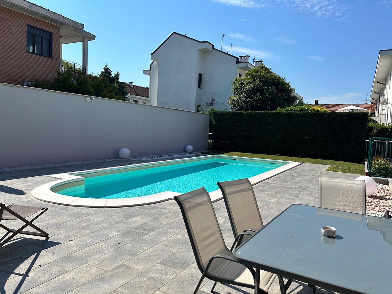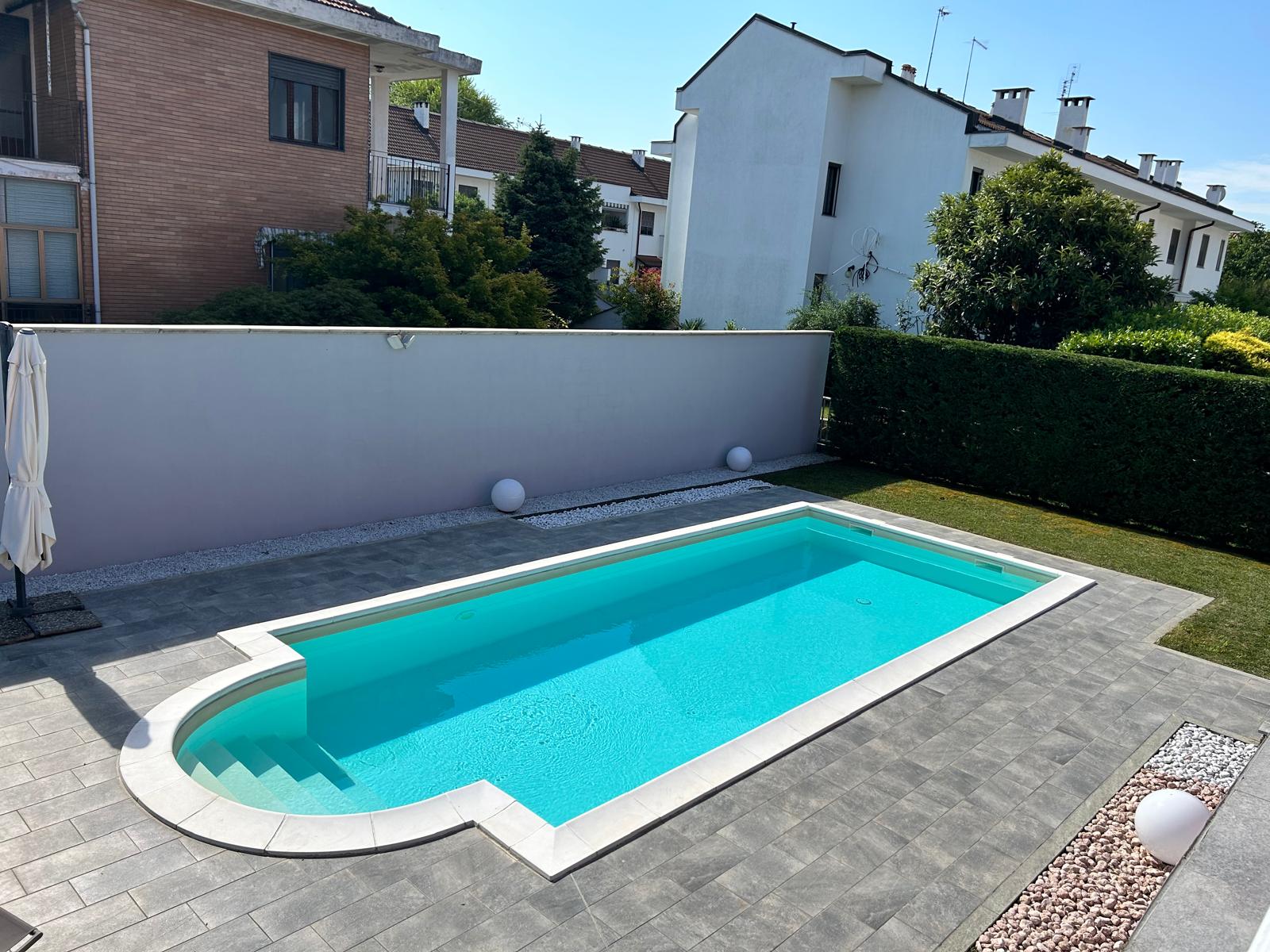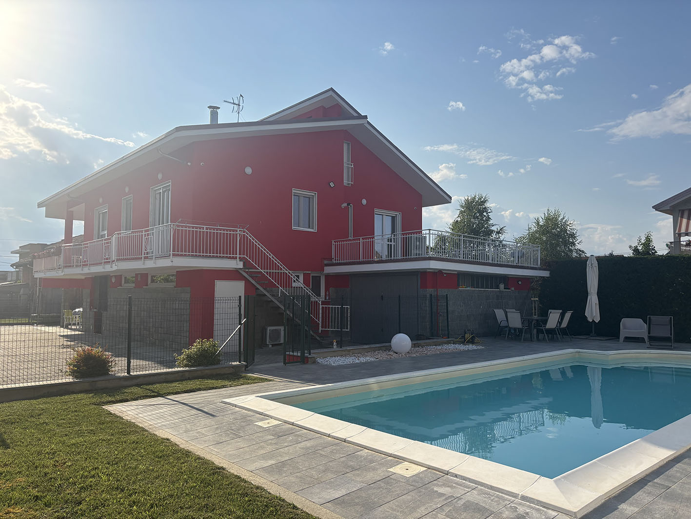 A Volpiano, in via Magellano, 3 proponiamo in vendita meravigliosa villa completamente ed attentamente rinnovata, pari a nuova costruzione, con piscina riscaldata, giardino privato e box auto completamente rinnovata e completa di ogni comfort. La casa si dispone su tre livelli abitativi. Il primo piano è quello prettamente abitativo, con un fantastico salone living su cucina living, due camere matrimoniali, e due bagni. L’ingresso è sul salone dotato di termocamino che da accesso all’ampio spazio cucina ed al terrazzo del lato cortile. Le camere, entrambe matrimoniali sono affacciate su lato piscina, una delle due da accesso ad un enorme terrazzo ed è dotata di bagno privato. Al piano terreno è presente un ampio locale sgombero, un bagno ad uno lavanderia e vi si trova forno a legna, camino, condizionatore con splitter. E’ ancora presente un locale sgombero composto di due ambienti al secondo piano. La casa è stata oggetto di completa ed attentissima ristrutturazione, sono presenti tutti i comfort, tra cui impianto di domotica, sistema di filodiffusione, riscaldamento a pavimento suddiviso in zona notte e zona giorno anche in tavernetta, tapparelle elettriche, infissi di ultima generazione, cancello automatico. Il sistema di riscaldamento è innovativo ed efficientissimo. La piscina è riscaldata, deliziosamente illuminata, circondata da prato e da spazio relax. E’ infine presente l’orto ed un fantastico ” spazio bimbi” con giochi per le famiglie che può essere trasformato in ulteriore area relax. La casa è indipendente su quattro lati, dotata di cortile. Completa la proprietà un caseggiato, trasformabile in altra proprietà con due alloggi, o utilizzabile come magazzino.